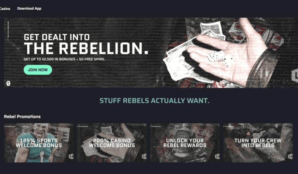 #2. Lucky Rebel – RNG-certified platform, Sportsbetting and casino features – ↗️Visit Website